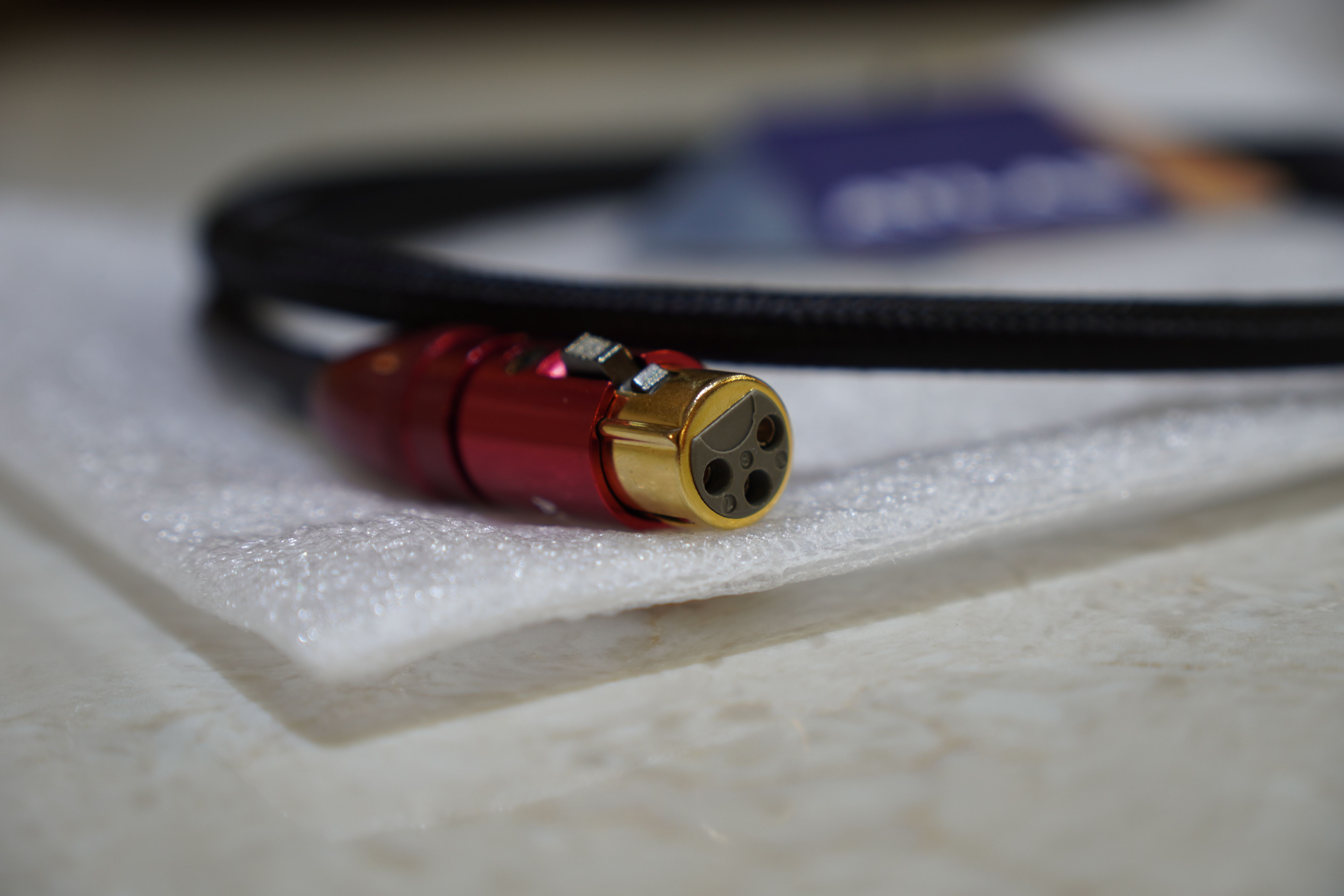 The Mavros AES/EBU cable is engineered as a cable with extremely precise transmission and termination standards, incorporating the same microporous PTFE (Teflon™) dielectric insulation as the other Mavros interconnects. The centre conductor is comprised of a monofilament conductor and 18 strands of super pure copper wire insulated by a thin layer of microporous PTFE. This new dielectric behaves almost like the theoretically perfect insulator –free air – with minimal effect upon the signal being transmitted. The previous highest performance insulator, solid PTFE, has a dielectric constant of around 2.1 whilst the new PTFE (Teflon™) foam improves this figure to around 1.5, providing for a 30% greater signal velocity and better signal integrity, particularly in the area of high frequency timing and stability.