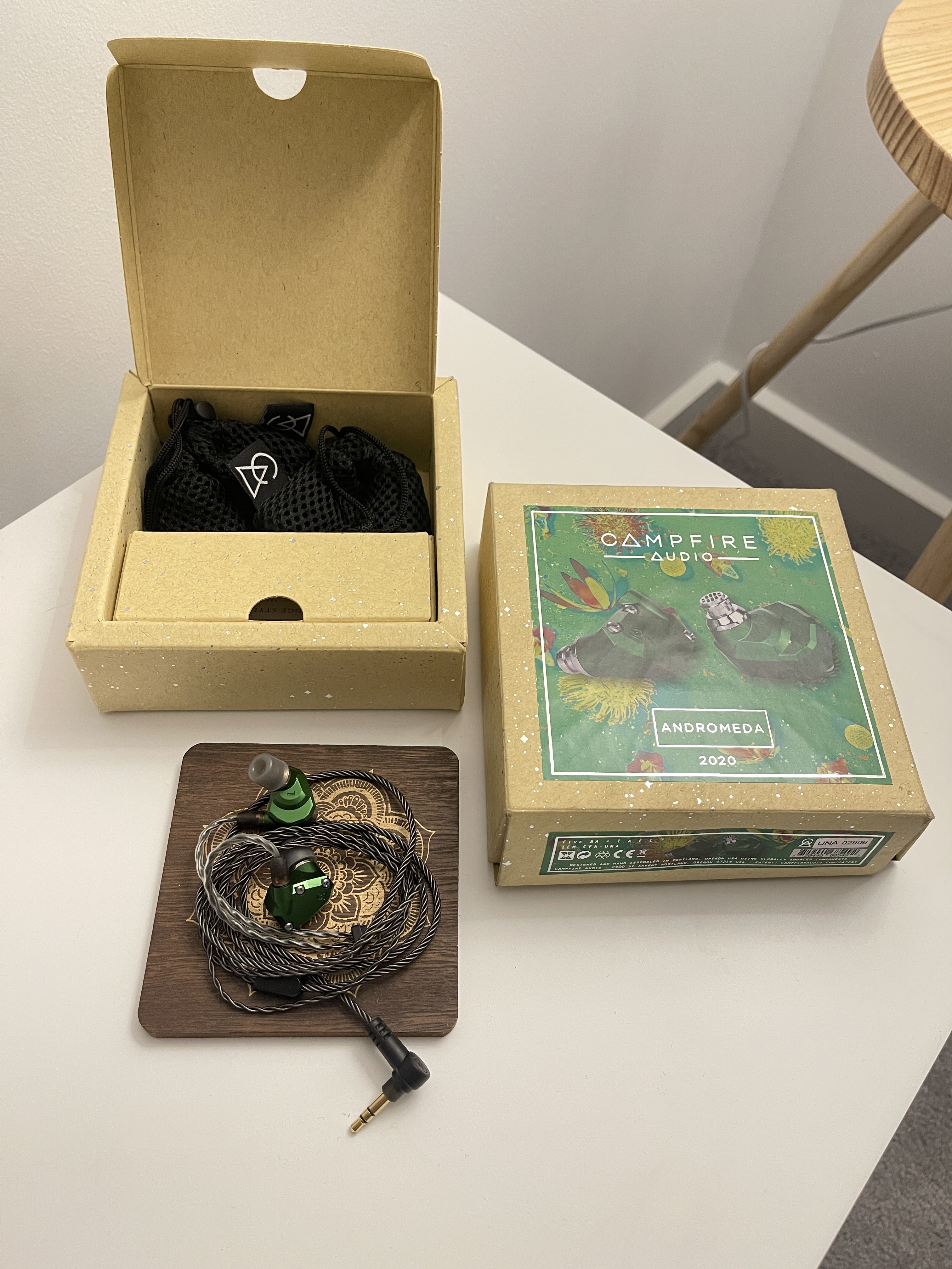 This IEM is In great condition and comes with all of its misc items such as the ear-tips, carry cash, black pouches, box, hard brush cleaner and the campfire pin.
