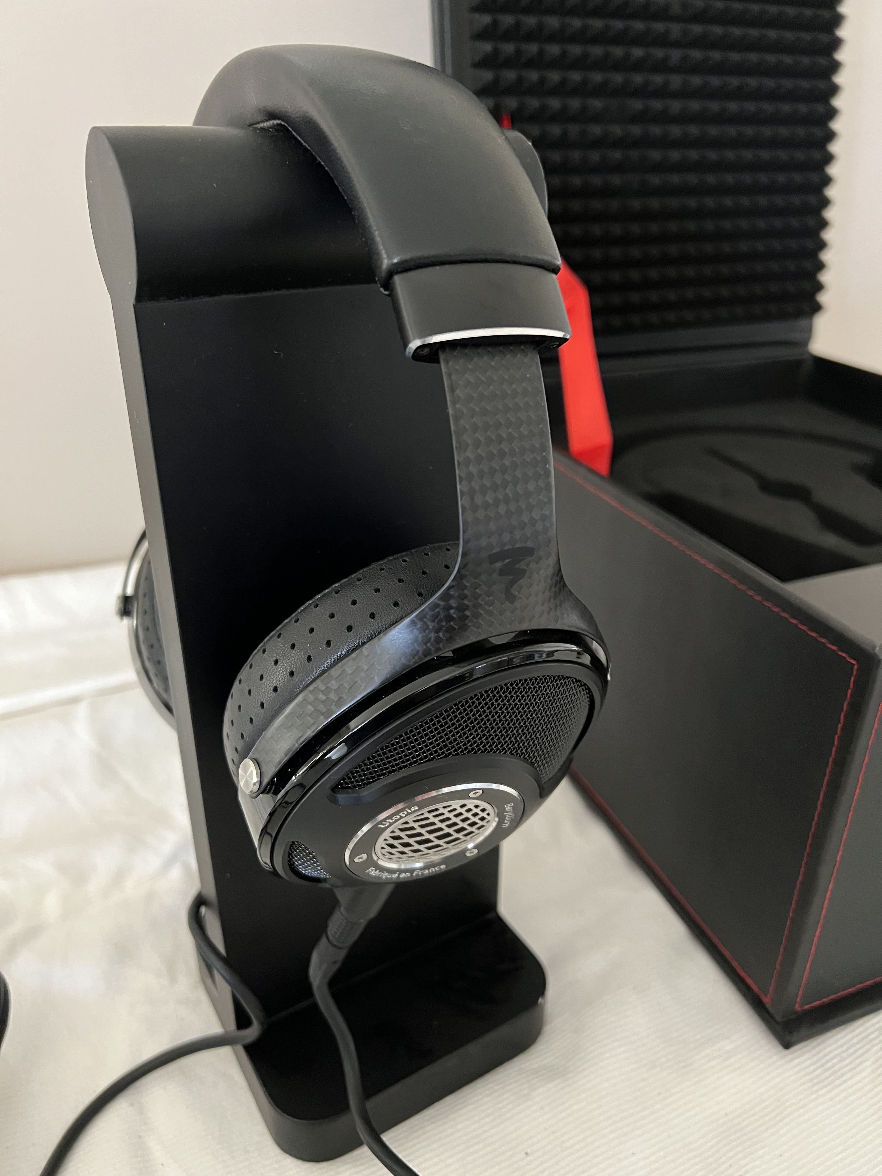 Bought these a few years ago as headphones for the office. I never really got into them, the cord kept getting in the way of my atrocious typing only making it worse. Ive upgraded my headphone system and put it in the lounge. I have always had them under a STAX cover to keep them clean and dust free, I'll include that. I'll also include the stand if you're picking up, not worth posting I expect but up to you.