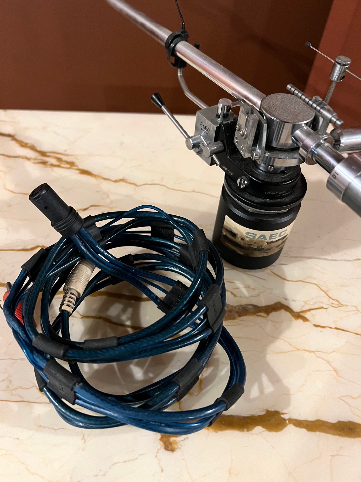 Designed and offered as a top flight tonearm by SAEC. Double knife-edge bearing, this tonearm comes complete with original headshell, high quality original SAEC phono cable and original SAEC oversized mounting, stabilising bolt/nut.