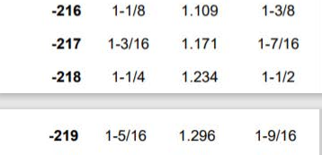 Here are the O-ring sizes from (Renseal's web site) - Item no. 216/217/218/219: