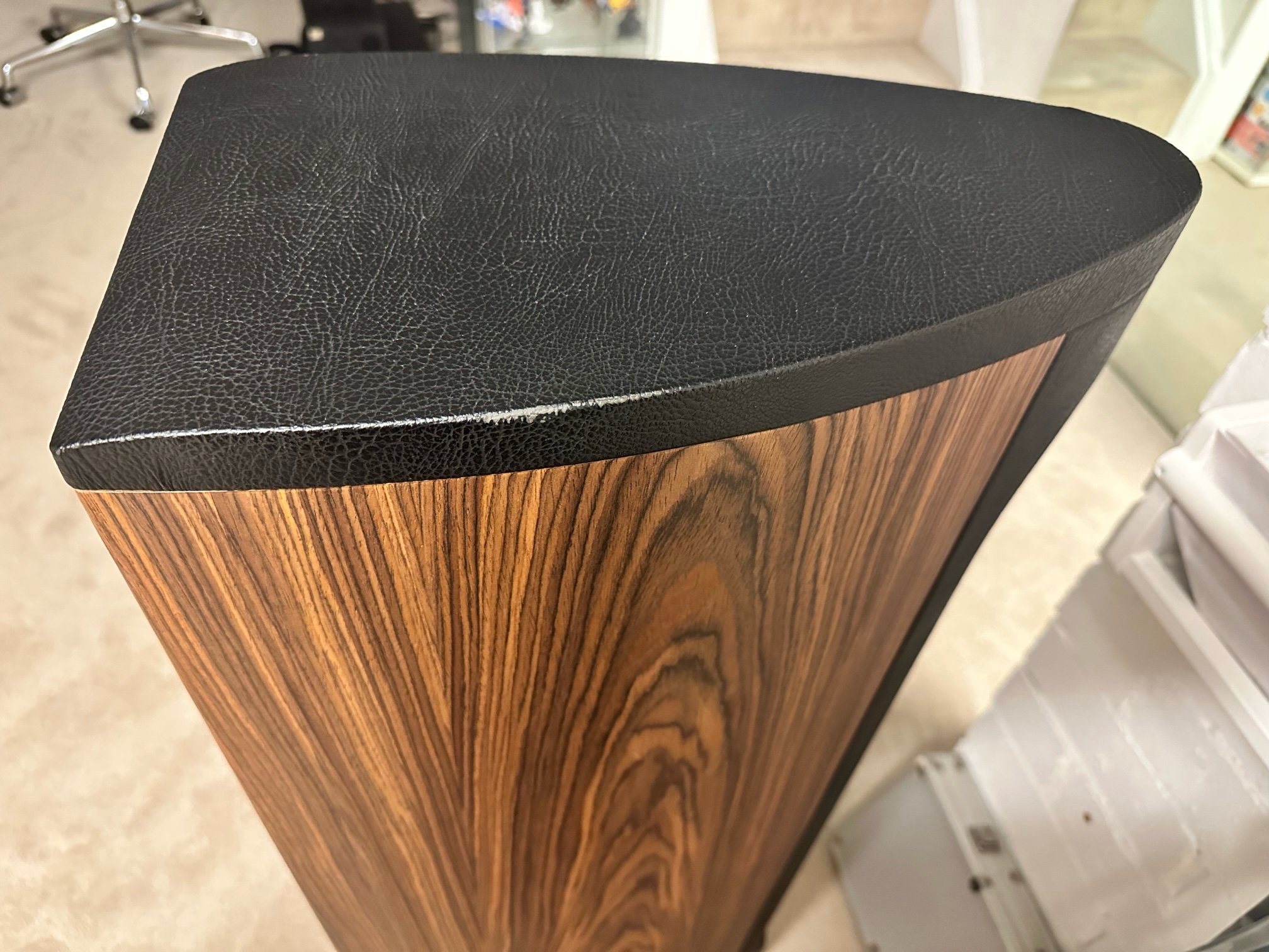 NB: Some slight lightening of the veneer on one side of the speakers as it had gotten the morning sun for a period of time. It's not too noticeable as you can see in pics but I thought it worth mentioning. Boxes included.